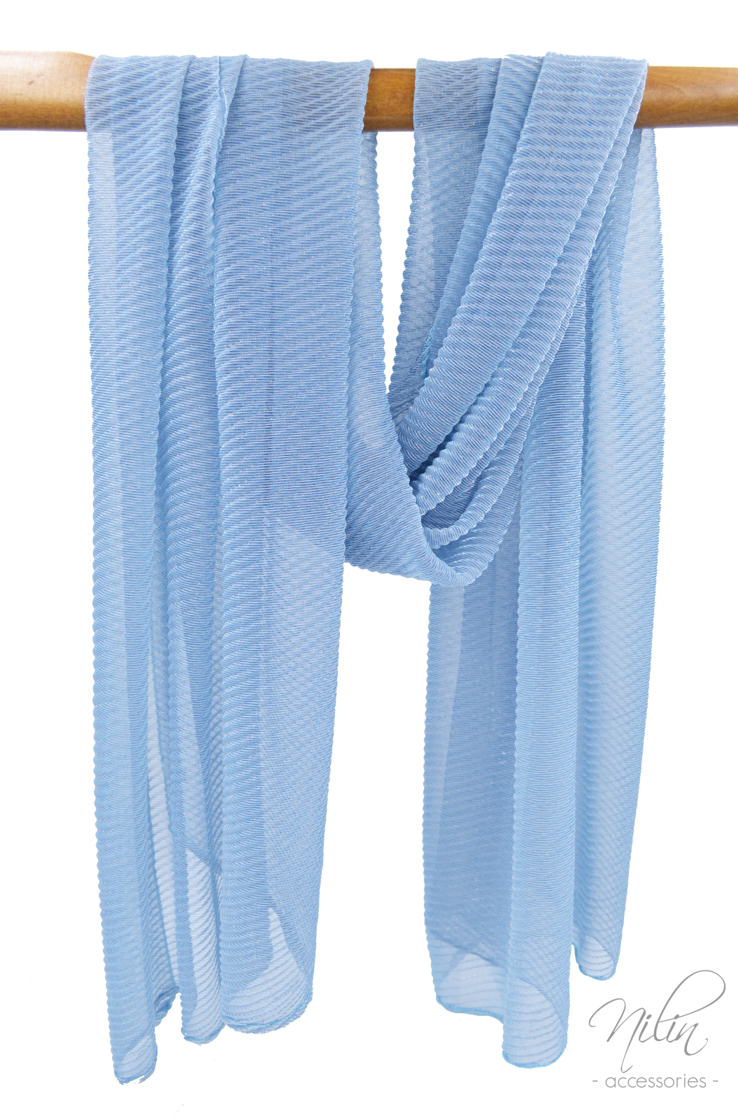 Alkalmi pliszírozott sál, csillogó, világoskék
